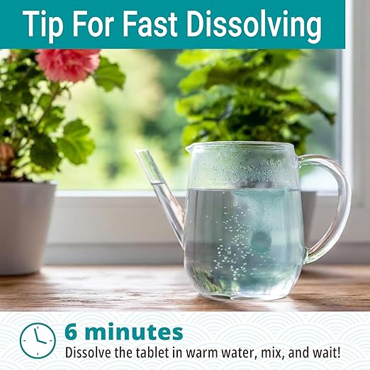 - 🚰 INSTANTLY DISSOLVES IN WATER - You’ll receive 3 packs of 6 tablets for a total of 18 tablets (each approx 2 cm round, 0.7 ml high and 4g). Simply add 1 tablet (or 2 for trees) to 1.3 gallons of water. They’ll dissolve instantly, so every last drop delivers maximum nutrition to your plants, inside and outside!