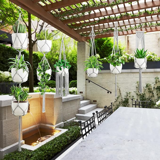 - VALUE PRESENT PACKAGE: Macrame plant hanger included six Different Sizes Crochet Plant Hangers, six“S” Hook, six Ceiling Hook, six Expansion Tube. Unique creative design, modern, retro style hanging plant add the perfect touch to your room and living room, you can hang indoor plant hangers on the ceiling in the living room, bathroom, bedroom and office. Great for indoor and outdoor décor