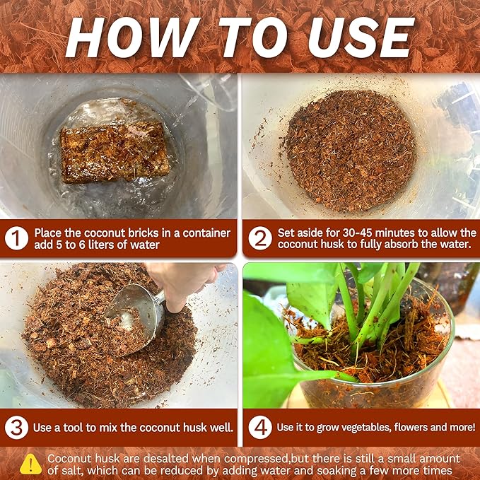 - [EASY TO USE]: Our coco husk chips are easy to use and can be mixed with other soil types to create a customized planting medium. It is also reusable and can be refreshed periodically to maintain its optimal condition. It can be used for indoor and outdoor plants, and it is suitable for a wide range of plant species, including flowers, herbs, vegetables, and succulents.