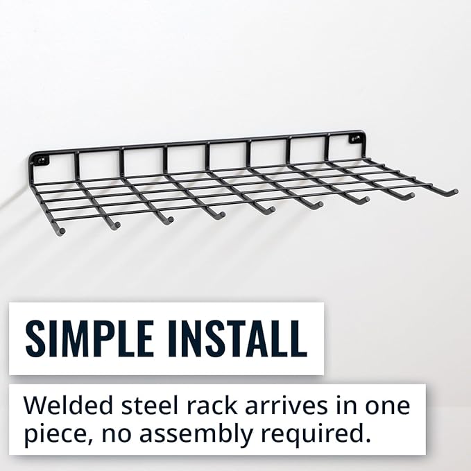 - WALL MOUNT SHELF: Solid steel wire shelf offers convenient wall storage for lawn and garden supplies, floral supplies, boxes, bags, and more. The rigid frame supports up to 40 lbs for a secure setup.
