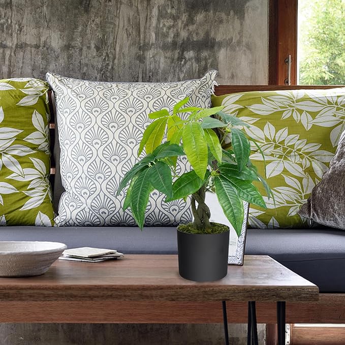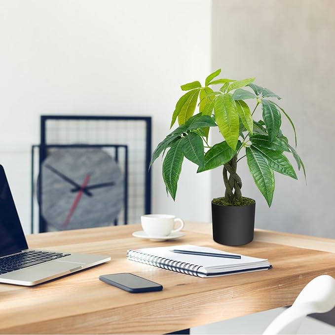 - Faux Plants Indoor - Nice realistic plant and high quality artificial trees, this fake money tree leaves have real texture. Tabletop plants looks very real in appearance, perfect indoor fake planta tree decor for your office desk, Living room, picture window, home entranceway, bedroom. All year around keep greenery.