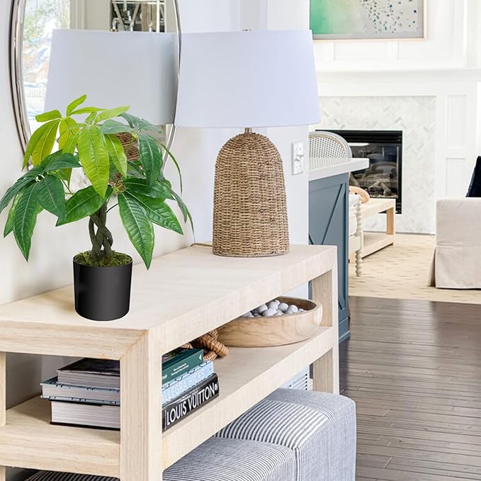 HUAESIN 18 inches Artificial Money Tree Faux Tree Table Top Fake Potted Plants Indoor Small Silk Tree Pachira Aquatica for Home Table Bedroom Kitchen Office Porch Decor Aesthetic