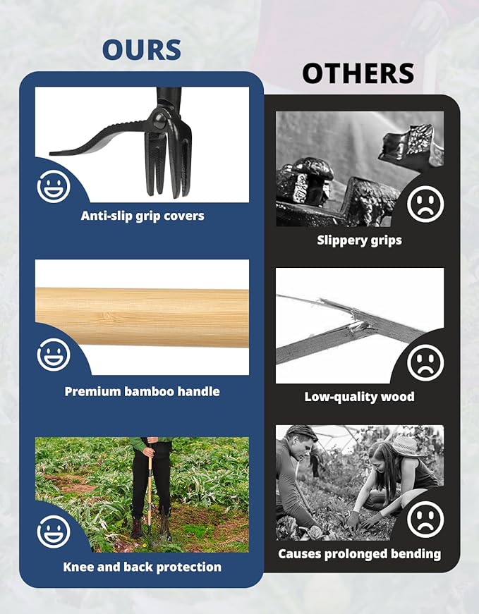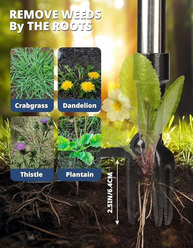 - No More Bending: The standing weed puller design protects knees and back, making weeding effortless