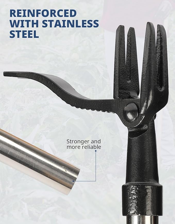- Reinforced Design: Stainless steel reinforcement at the connection between fork head and bamboo pole for improved durability. Heavy-duty 4 claw structure for peace of mind during use
