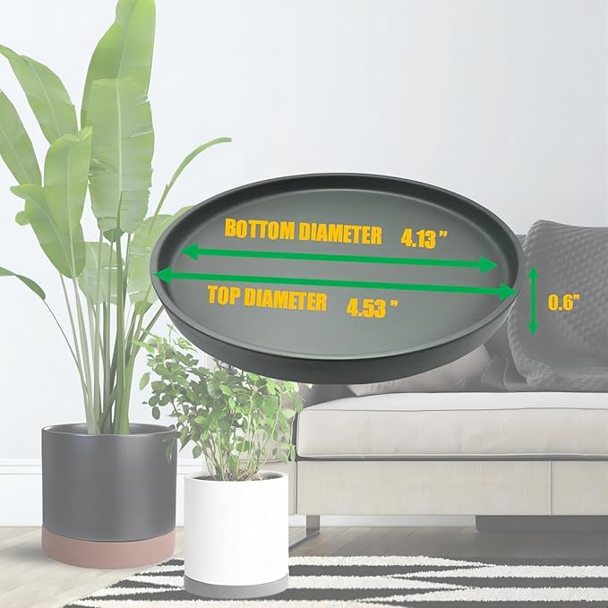 - đż ă Multi-size plant dish ă : Plant Flower pot saucers, offers a variety of small, large, extra large size plate plant saucer and flowerpot tray color, 4/4.7/5/5.6/6/6.4/6.6/7/8.5/9/10/11/12/12.26 inch plant saucers, from small to large outdoor indoor plants garden. Please compare the size of the plant bottom of the pot with the size of our plant saucer before purchasing to ensure that you can match the right pot, and the large size plant saucer pot tray is compatible with the small size pot.