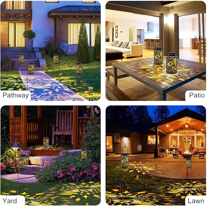 - 【Gorgeous Design】-- The outdoor solar lanterns combine vintage Black and eagle patterns. The decorative lantern emits soft golden light at night and displays dynamic and beautiful patterns on the table or ground. It is a gorgeous and unique outdoor garden yard decor.