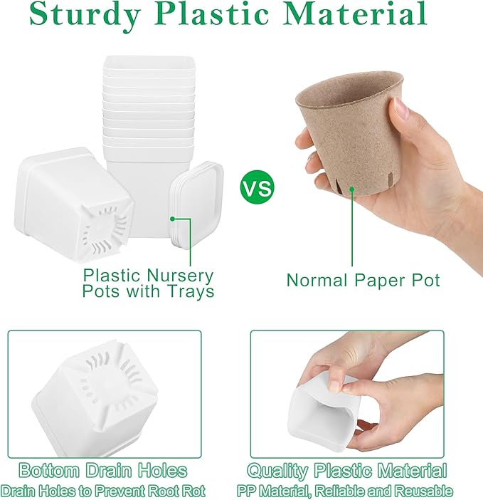 - Premium Plastic Pots: crafted from sturdy plastic, each nursery pot comes with its own tray and adds a splash of color to uplift your mood; approx. 2.76 x 1.97 x 3.15 inches/7 x 5 x 8 cm in size, these lightweight, waterproof pots are reliable and reusable; designed with drainage holes at the bottom, our pots provide excellent drainage without clogging or soil leakage, fostering a healthy environment for your plants to thrive