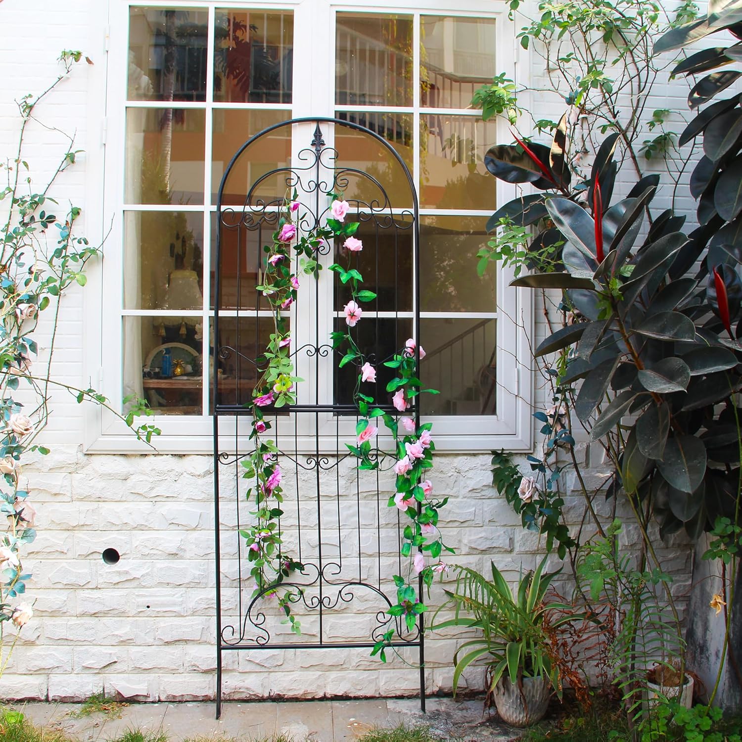 - Versatile Functionality: Beyond supporting climbing plants like roses, ivy, clematis, and jasmine, this trellis serves multiple purposes. Use it to support small flower pots or as a wire lattice for securing long-stemmed or vine vegetables such as tomatoes, peas, or cucumbers. Additionally, it can function as a decorative screen for your garden or house, adding beauty and variety to your outdoor space.
