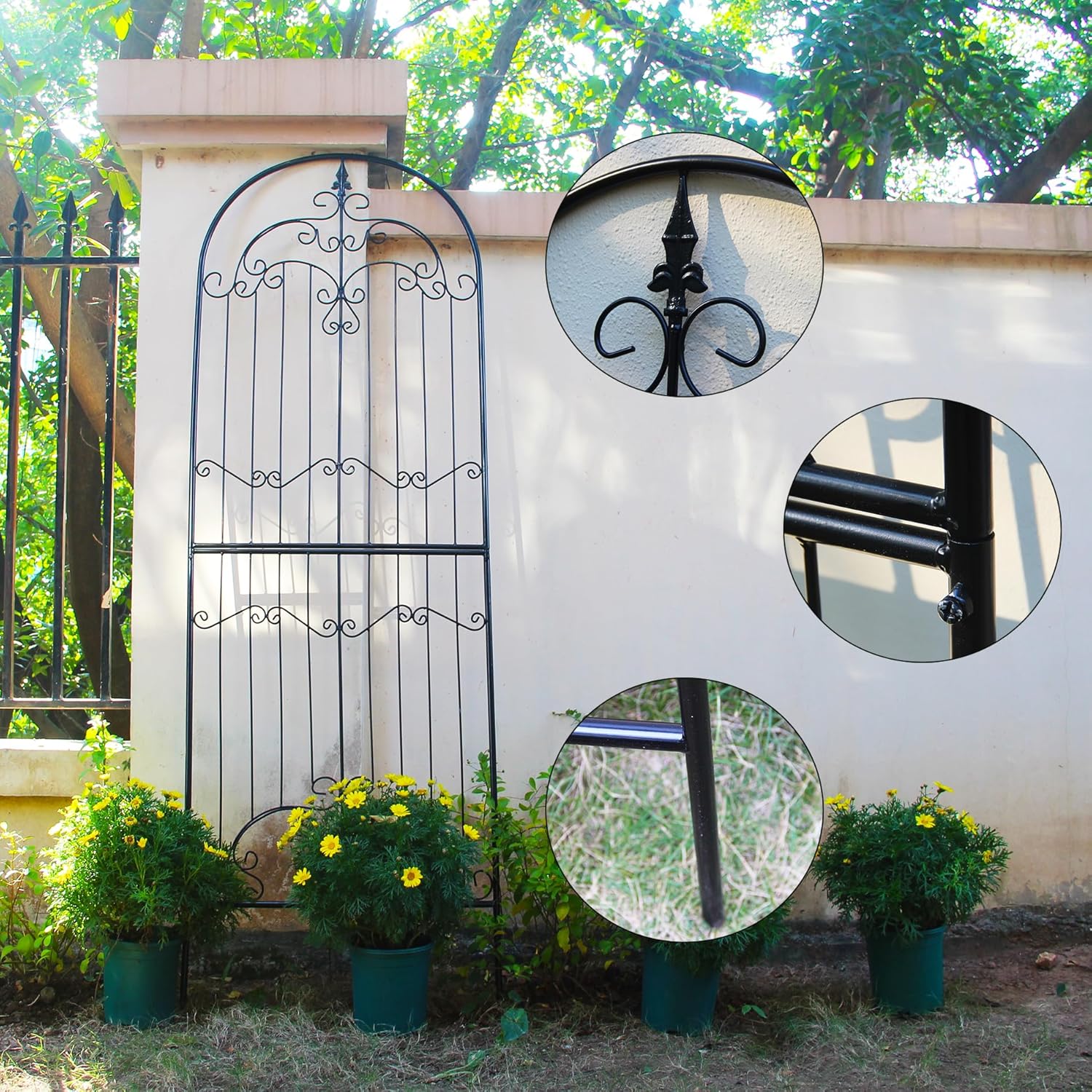 - Enduring and Weather-Resistant: Crafted from rustproof, high-quality iron with a sleek black powder-coated finish, this plant trellis offers sturdy support for a variety of climbing plants and vines. With dimensions of 86.6" H x 29.5" W and a net weight of 14.3 LB, each package includes a single garden trellis.