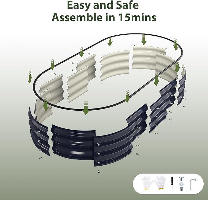 - Oval Designed & Galvanized Material: Raised garden beds outdoor is made of double-layer galvanized metal sheet with anti-rust coating to avoid rusting. The nuts and bolts are also galvanized. Elegant oval design with firm structure and no sharp corners