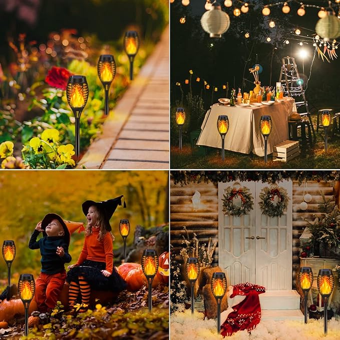 - Gorgeous Outdoor Decorations: Mini-Size 12LED solar lights outdoor flicker a dancing flame, a festive decoration and romantic landscape for outdoor decor, such as garden, yard, pathway, patio and barbecue, home party, wedding, which could create a gorgeous and attractive campfire ambience.