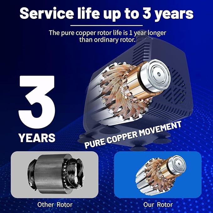 - 【Quality & Ultra Quiet】In order to keep the pump quiet and has a longer service life, increased the cost by using high quality rotor and copper,makes the pump quiet & has longer life than others.