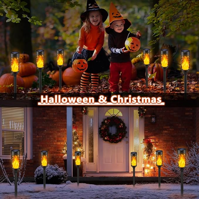 - Gorgeous Flickering Flames: LiupTiuo solar torch lights outdoor flickering flame flicker a nice soft dancing glow, which looks like real flames. These solar garden decorations are wonderful outdoor decorations for garden, yard, patio, porch, pool, lawn, creating a perfect festival ambiance for party, camping and BBQ.