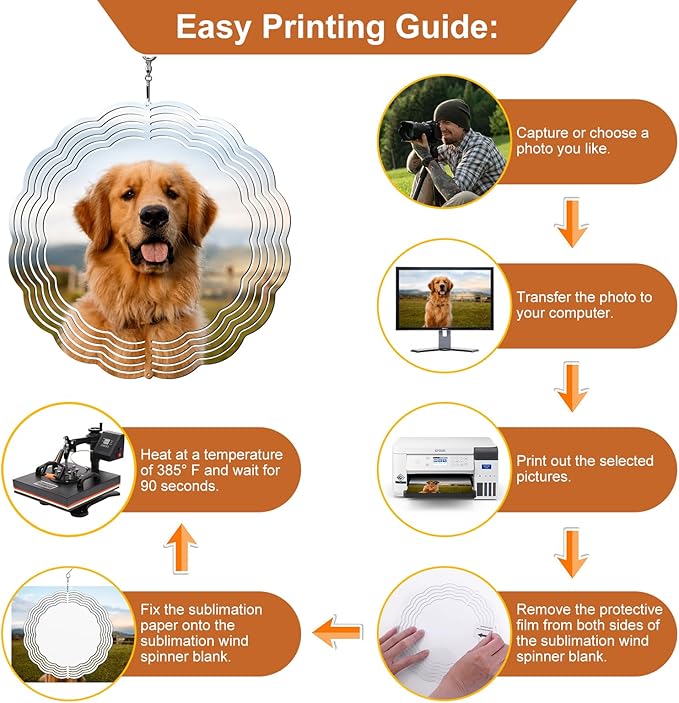 - [DIY SUBLIMATION WIND SPINNER] Sublimation wind spinner blanks offer exceptional customizability, allowing you to incorporate your favorite designs or photos, unleashing your imagination to create a stunning personalized product. This sublimation wind spinner blank is suitable for heat transfer and UV printing, ensuring vibrant colors that stand out. You can personalize both sides with either a single or two different designs