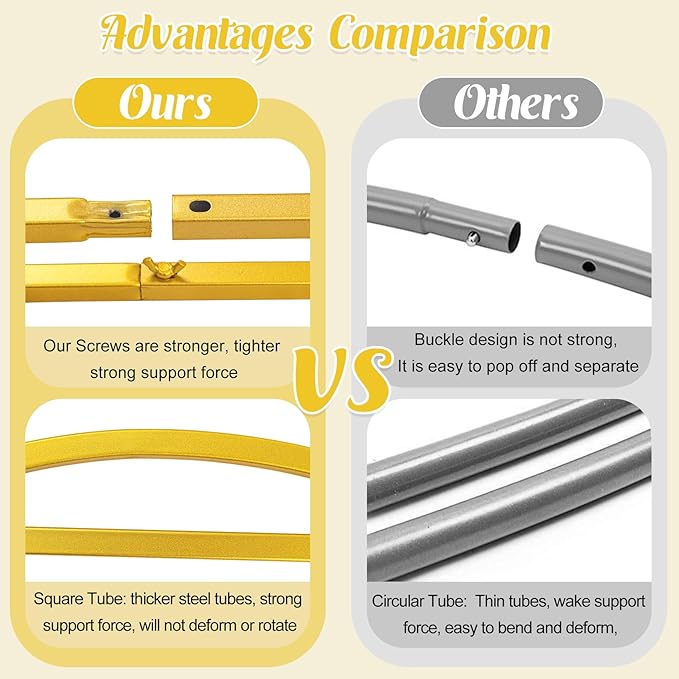 - 【Easy to Assemble and Disassemble】 Upgrade thick square tube design, the tubes are thicker than other suppliers. You can set up or disassemble arch backdrop stand within 5 minutes by yourself. The package includes installation manual for your reference. We also provide colorful arch cover stand in our store.