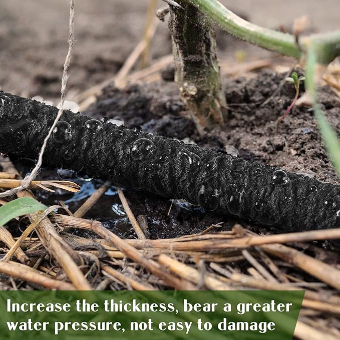 - Quality and Reliable Material: made of quality rubber and PE material, the soaker hoses for garden 400 ft are reliable and serviceable, not easy to fade or break, easy to wrap around plants or under soil without damaging the garden area; They can withstand both cold and heat, dependable to work in bad weather