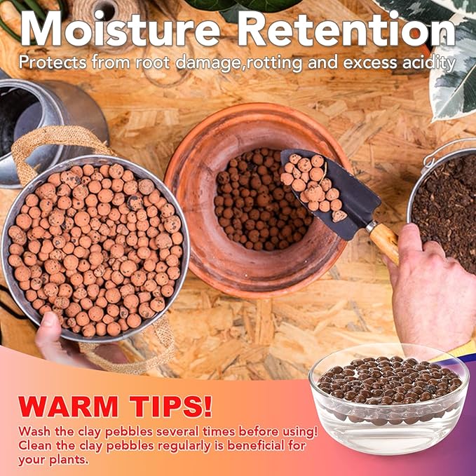 - 【EXCELLENT DRAINAGE】Expanded clay pebbles provide good drainage and water retention for plants.When clay pebbles are placed at the bottom of the pot, it prevents plant roots from rotting. Putting them on top not only keeps the soil wetting, but also can be used to decorate the plants.