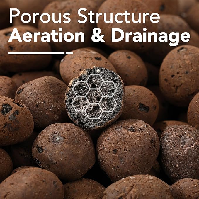 - 【NATURAL EXPANDED CLAY PEBBLES】Made of natural clay, baked at high temperature into round pellets, pH neutral helps remove excess acidity, sturdy, no odor, not easy to break, you can safely use it in your garden to help plants grow healthier and faster. Widely used for plant pavement, pot base and hydroponics.