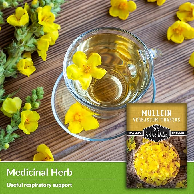 Mullein Seed for Planting - 2 Packets with Instructions to Plant and Grow Medicinal Herb Common Mullein in Your Home Vegetable Garden - Non-GMO Heirloom Variety - Survival Garden Seeds