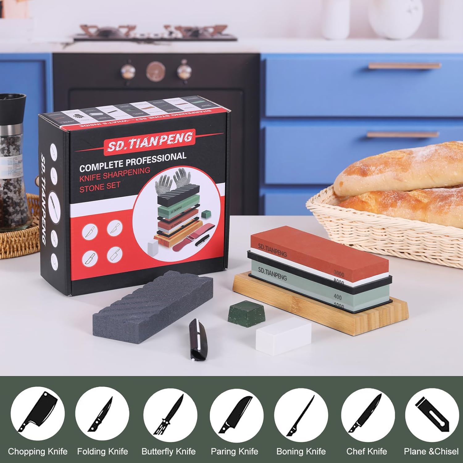 Knife Sharpening Stone - Dual Grit Whetstone 400/1000 3000/8000, Knife Sharpening Stone Set, Tpstone Knife Sharpener Tool,Easy to Use