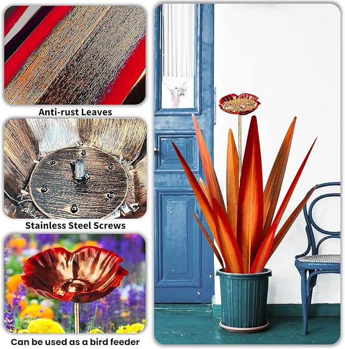 - ❤ [Simple to Install] - The tequila patio decor art sculptures can be placed on the ground directly, easy to install and no need any tools, just put the metal flowers decor anywhere you want.