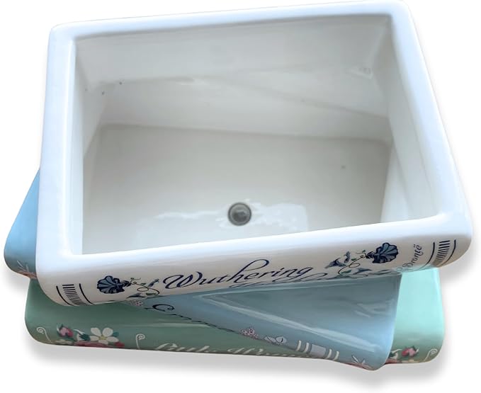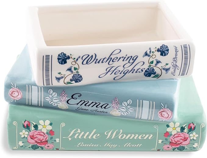 - DESIGN: The decorative books feature artwork influenced by titles including Emily Bronte's "Wuthering Heights", Jane Austen's "Emma", and Louis May Alcott's "Little Women"--the perfect titles on our vases & planters
