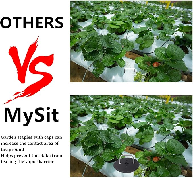 - Multiple Applications: Capped vapor barrier stakes are great for moisture barrier liners and encapsulations, poly sheeting, ground or weed cover. Helps prevent pushing the stake through the vapor barrier, Helps keep the vapor barrier from ripping when being crawled on. The landscape fabric staples also great for anchoring landscape fabric, ground tissues, tubing drip irrigation hoses, gardening landscaping, holiday decorations, sod grass, vegetable bulbs, flower garden.