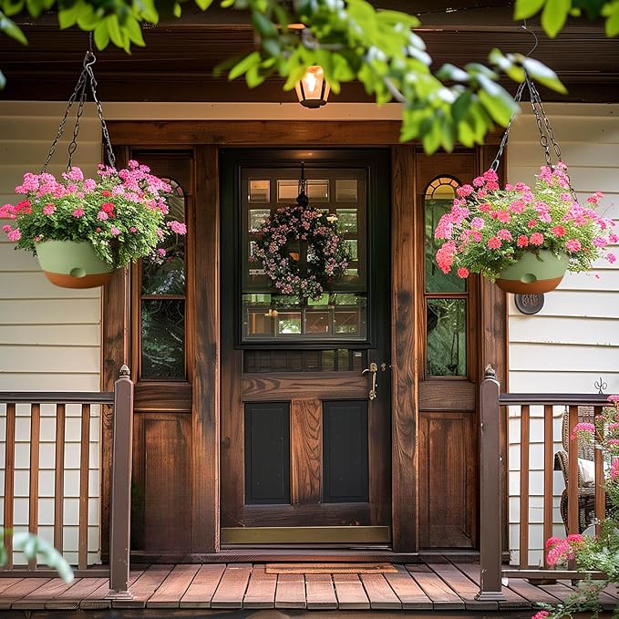 • 【Thicken Material 10 inch Hanging Plant Pots】Our plant hanging basket crafted from sturdy plastic, these 10 inch hanging planters withstand various harsh weather conditions for extended periods, ensuring planters withstand various climates and temperatures without fading or cracking, even during prolonged outdoor use. Lightweight and versatile self watering wall planter, each hanging baskets for plants set comes with two S-shaped hooks for easy installation.