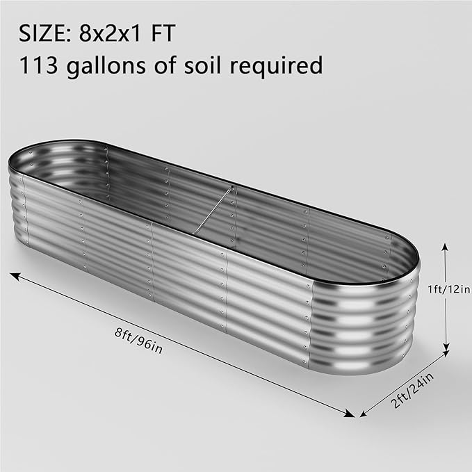 Large Raised Garden Bed Galvanized Metal Round Raised Garden Bed Outdoor for Gardening Raised Garden Bed Kit,8x2x1FT for Vegetables Flowers Ground Planter Box