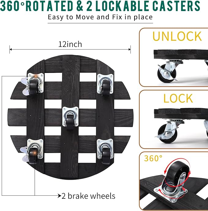 - 🌻【Enlarged 12" Size】12" plant roller base with 2.7" height can accommodate larger pots. Equipped with interlocking slats, it can provide good drainage system so that your plant pots will not be flooded.