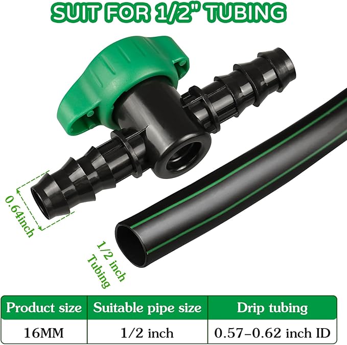 - 【Great value】- Package includes 6 pieces drip irrigation valves for use with 1/2" Drip irrigation tubing.
