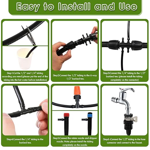- Simple installation without digging or plumbing skills. After installing the drip irrigation kit, the plants can be automatically watered every day (need a water timer NOT INCLUDED).