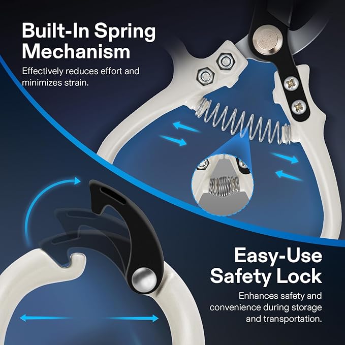 - Professional-Grade SK5 Blades: Crafted from professional-grade SK5 steel, these razor-sharp blades offer exceptional rust and wear resistance; Engineered for 30% higher cutting efficiency and smoother operation, these garden clippers elevate your trimming experience