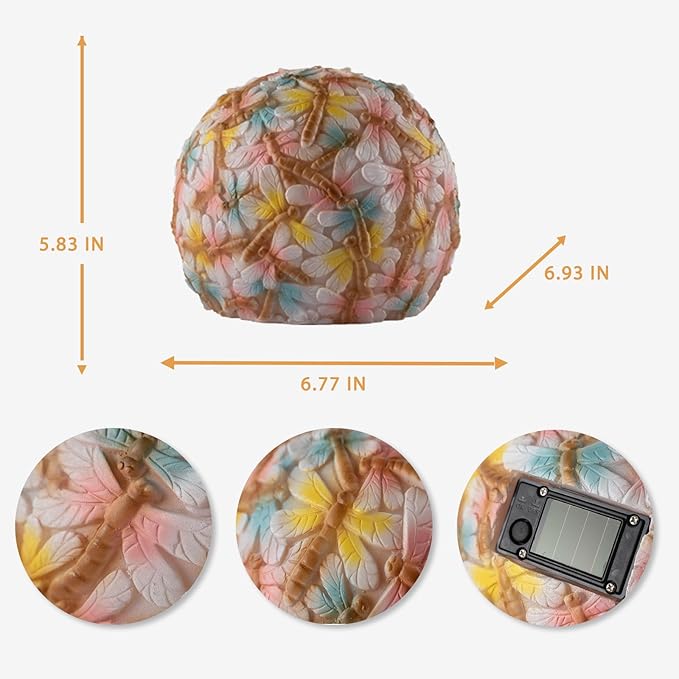 - 【COLOR CHANGING SOLAR LIGHT】This solar dragonfly ball statue is very easy to install and use.Simply turn on the switch and place it under the sunlight and let it charge during the day.These solar lights on dragonfly ball will automatically turn on at night to provide a warm and welcoming glow for 8-10hours.