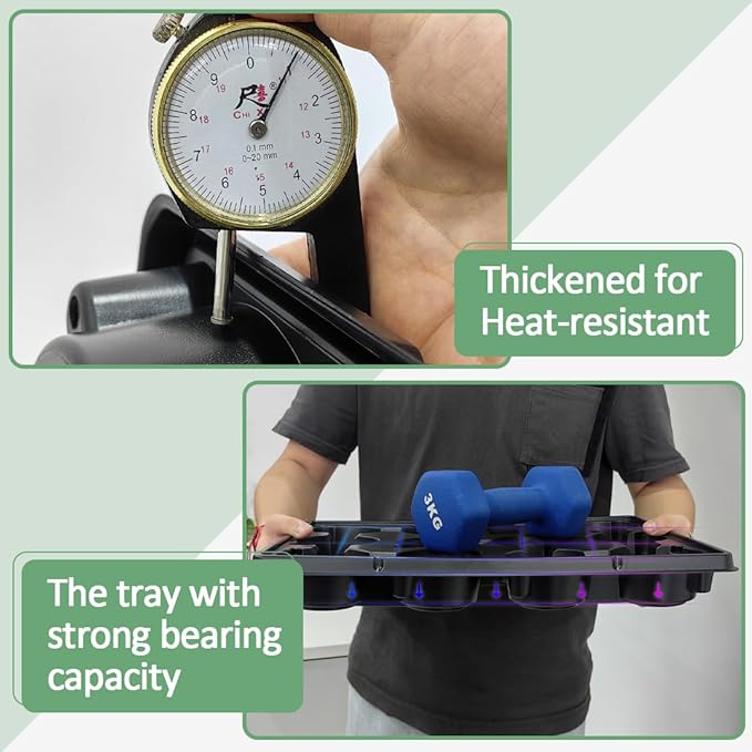 - 【High Quality Material】Our seed starter tray is made of high-quality new material BPA free, with high toughness, not easy to deform, good thickness and easy to move. Added anti-aging factor, long service life, reusable. Whether for commercial or household use, it can meet your high requirements for tray durability.