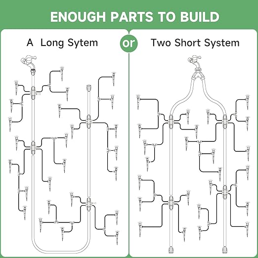 - Upgraded Tubing Design - The main tubing has been upgraded to support higher water pressure. The long 35FT main tubing can be cut into 2 main tubes and we offer 2 faucet connectors in the package to make it easy to build up 2 sets of drip irrigation systems if needed.