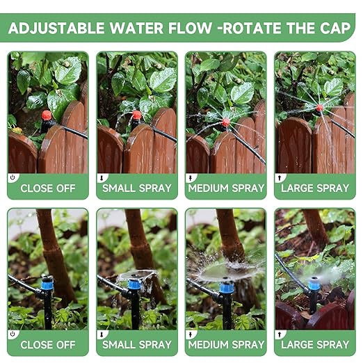 - Two types of sprayers - We include two types of sprayers to adjust the water flow needed. Includes 15 pcs drip emitter stream and 15 pcs drip emitter vortex.
