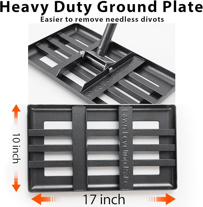 - Heavy Duty Ground Plate: The rake has a 17" x 10" ground plate that provides ample surface area for leveling the soil. This allows you to work efficiently and effectively, ensuring that you achieve a smooth and even lawn surface.