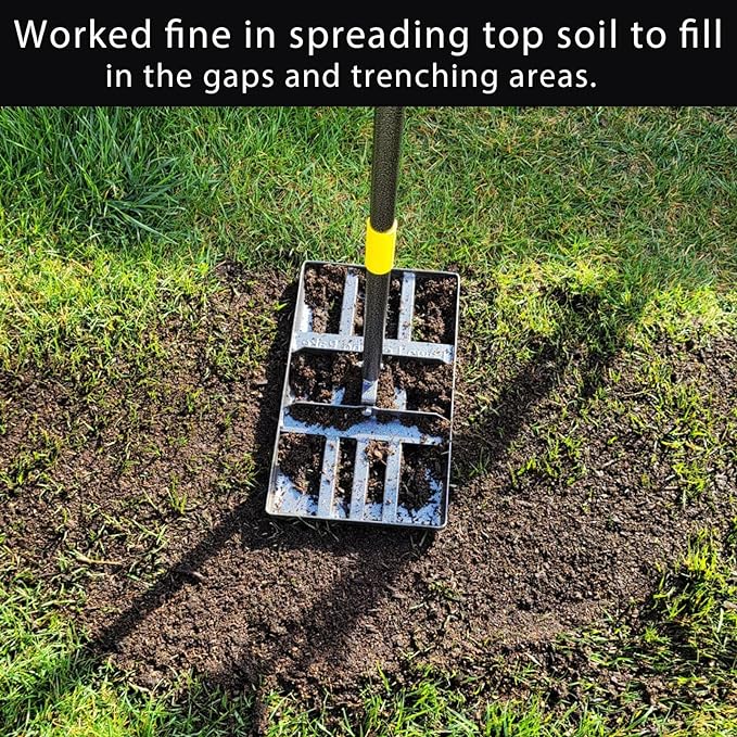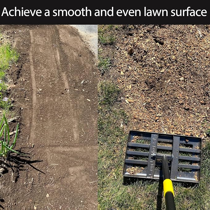 - Heavy Duty Construction: Our lawn leveling rake is built to last. It is made with high-quality materials and construction, making it sturdy and resistant to wear and tear. This ensures that you can use it for years to come.