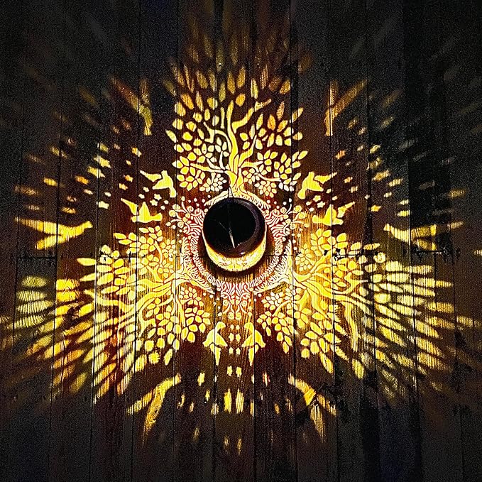 - 【Beautiful Decorations/2 Pack Lantern】- 2 Pack Tree of Life solar lantern can project unique and beautiful patterns in a dim environment, creating a gorgeous and warm atmosphere to bring life and fun to your garden and attract your family or friends. The unique hollow out design and beautiful antique bronze color give it an artistic touch, perfect for decorating gardens, backyards, corners, Outside, sidewalks and many other scenes.