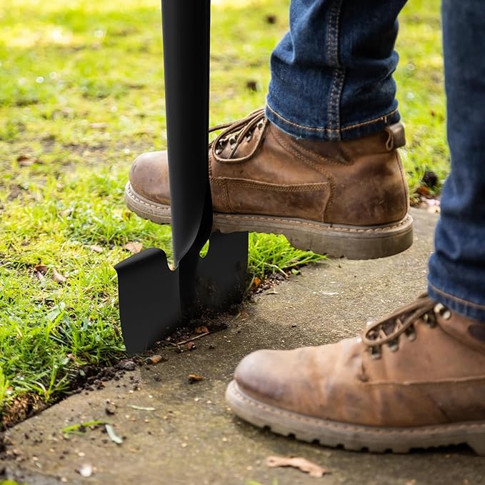 - Heavy Duty for Use: Our lawn edger tool features a half-moon blade made of durable carbon steel, a lightweight yet sturdy fiberglass shaft, and a D-grip handle. It is rust and water-resistant.