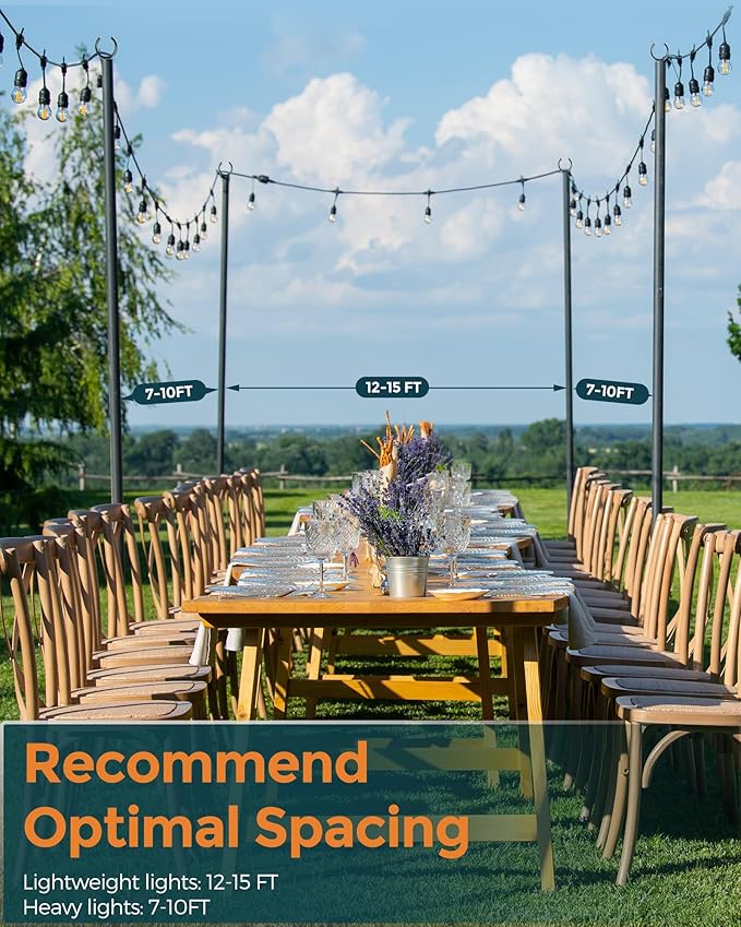 • 【SUITABLE POLE DISTANCE】: The outdoor pole distance for lightweight lights is 12 feet to 15 feet, and the distance for heavier lights is 7 feet to 10 feet. This distance ensures that the pole is straight to provide the great display.