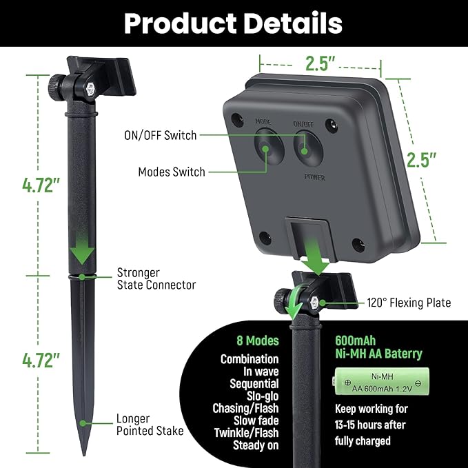 - 💥💥Customizable Modes: Adapt the ambiance to fit every occasion with 8 distinct lighting modes. From a gentle twinkle reminiscent of starlit skies to a steady warmth that sets the stage for tranquil evenings, our solar string lights outdoor are equipped with a smart memory function that recalls your preferred setting, casting the perfect mood night after night.
