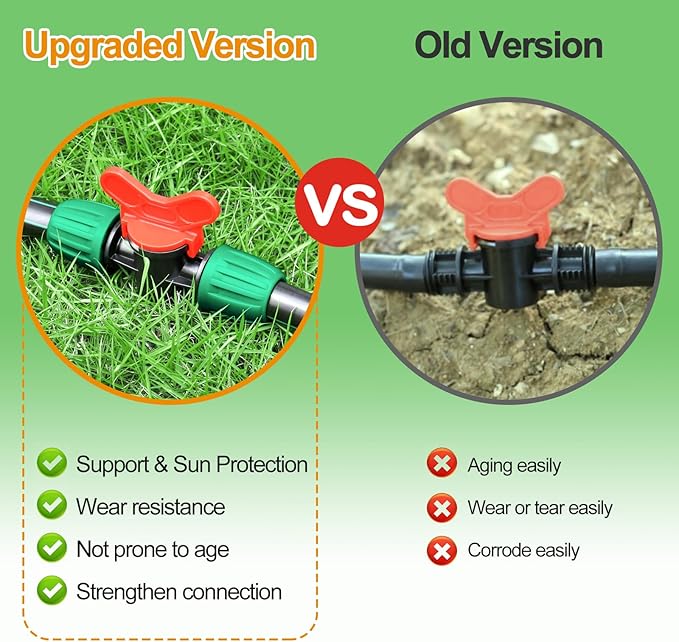 - 【1/2 Inch Drip Irrigation Valve】You'll get 8 pieces of Drip Irrigation Shut Off Valves for 1/2 inch drip irrigation tubing. It's great to control, slow down or completely shut off water flow, ensuring optimal water distribution to individual plants or planting areas.