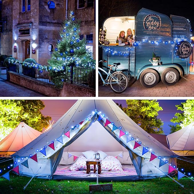 - 【Waterproof and Safety】The blue and white lights outdoor can withstand various weather (IP44), including heavy rain and snow, and are very suitable for indoor and outdoor decoration(Do not soak). No heat(The insulated copper wire keeps the lights at a low temperature so they are safe to touch after many hours of use), no radiation, low consumption, high safety.