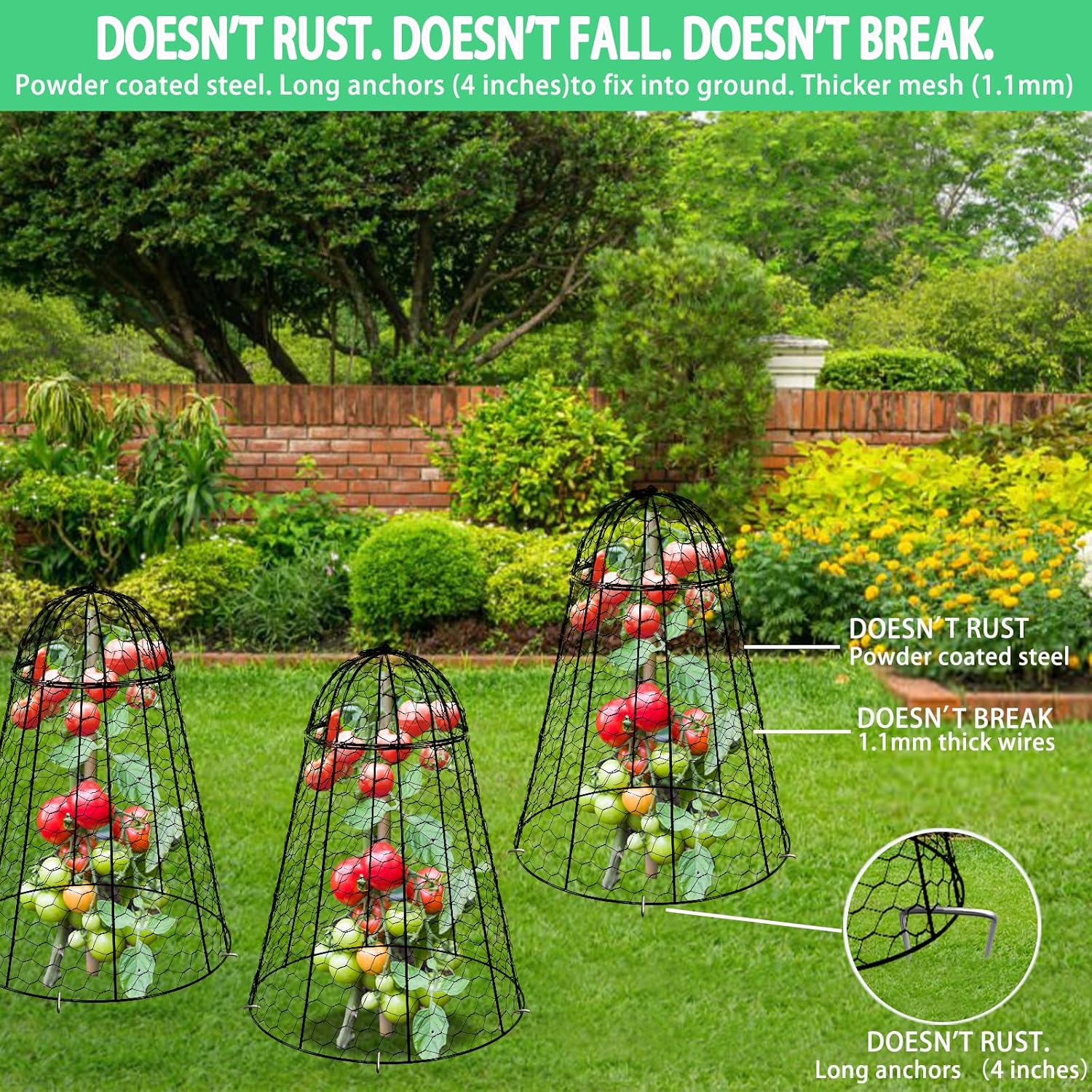 - 🌱Versatile Use: Use Chicken wire plant cover indoor to prevent your pet from destroying your potted plants.(plant protector from cats)Outdoors, cloche dome for plants have FINER MESH which is too small for squirrel, rabbit, birds, chicken, critters, bunny and rodents to enter, yet large enough to allow sunlight for your growing plant. Place it on top of plants or planting baskets as a barrier to keep moles/mores away from the roots. Sapbontchi metal tomato cage is garden protector from animals.