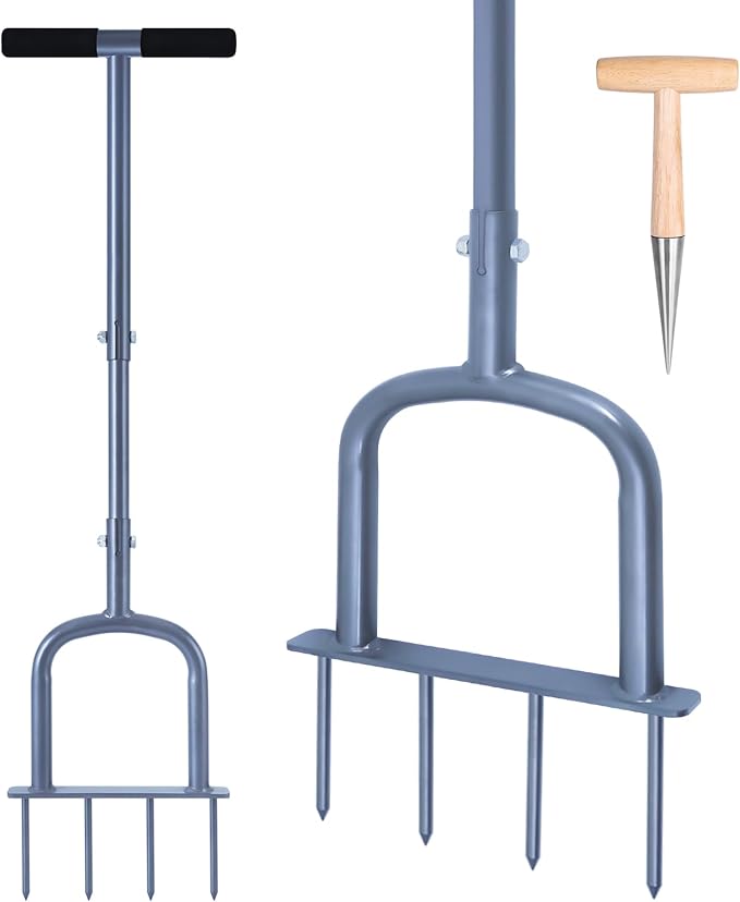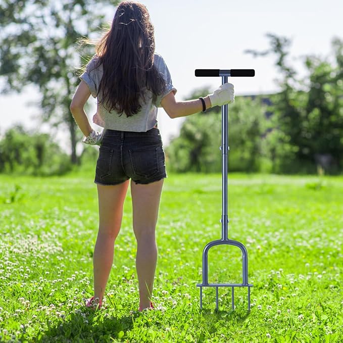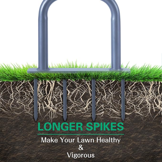 - 【Aerator Lawn Tool】-Aerator has 4 sharp pulses, aerator lawn tool will help you loosen the soil, penetrate the ground and reduce soil compaction, allowing water and nutrients to penetrate smoothly to the roots of plants and help them grow.