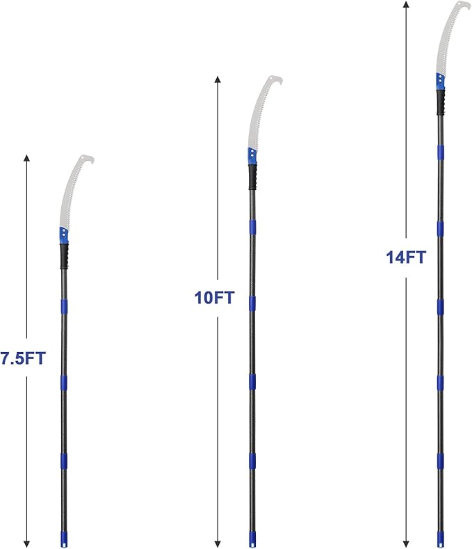 - [Easy to assemble] polar saws can be adjusted for length or can be hand-held for lower trimming and carding. The saws used for pruning trees have 5,7 or 10 sections of stainless steel 1.3 feet long and are rust-resistant, durable and easy to assemble. It can be easily installed together in a few steps.