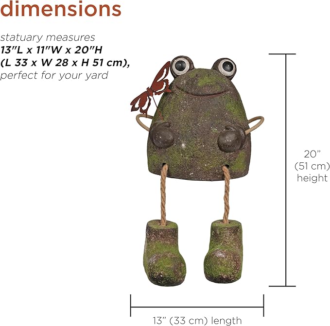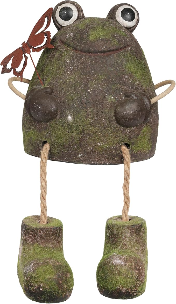 - ADORABLE DESIGN: Captures the playful essence of a frog with dangling rope legs, holding a beautiful butterfly, creating a whimsical scene that adds character and charm to your garden or patio