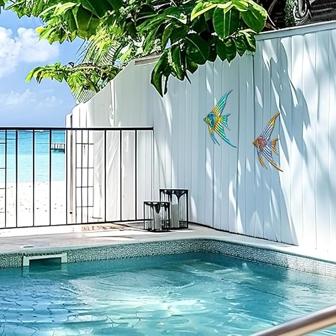 LIFFY Metal Fish Wall art Decor Beach Wall Decor Angelfish Art Sculpture Hanging for Outdoor Ocean Beach Sea Pool Decorations(Pair of Angelfish)